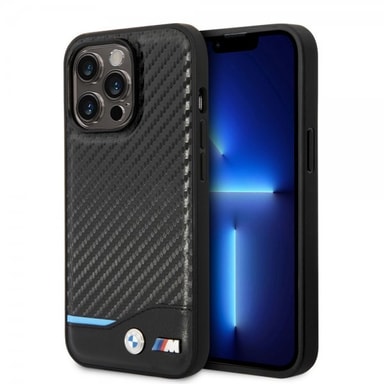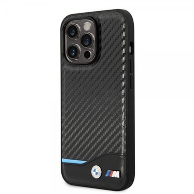 BMW iPhone 14 Pro Skal Carbon Effect Printed Logo Svart
