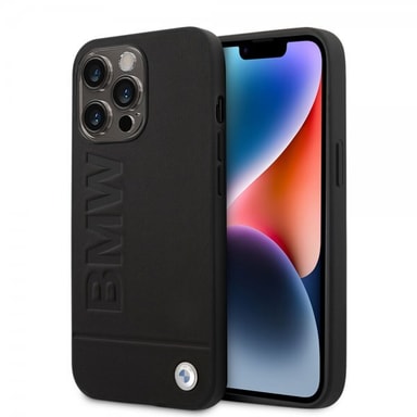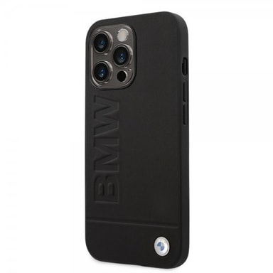 BMW iPhone 14 Pro Skal Hot Stamp Metal Logo Svart