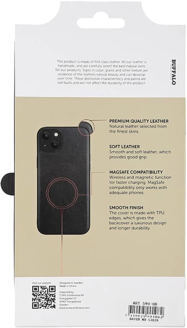 Det eleganta Buffalo iPhone 15 Plus Leather MagSeries-skalet erbjuder både fall- och stötskydd samt ett premiumläderutseende. Fodralet har mjuka gummerade kanter för bra grepp och erbjuder kompatibilitet med MagSafe-laddning.Läs mer om produkten