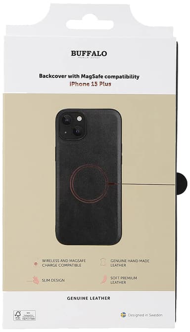 Buffalo iPhone 15 Plus Leather MagSeries fodral (svart)