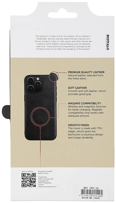 Det eleganta Buffalo iPhone 15 Pro Max Leather MagSeries-skalet erbjuder både fall- och stötskydd samt ett premiumläderutseende. Fodralet har mjuka gummerade kanter för bra grepp och erbjuder kompatibilitet med MagSafe-laddning.Läs mer om produkten