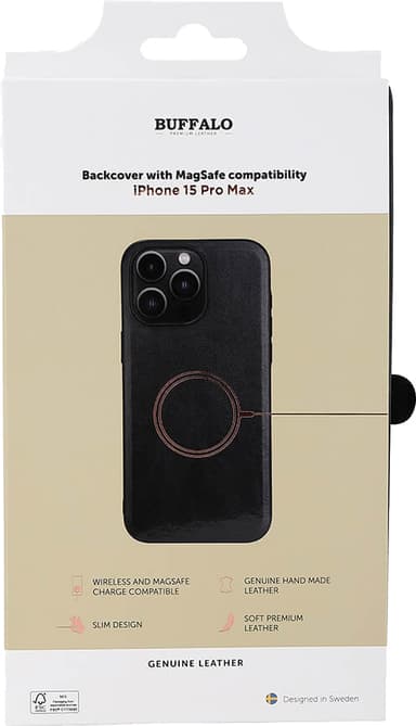 Buffalo iPhone 15 Pro Max Leather MagSeries fodral (svart)