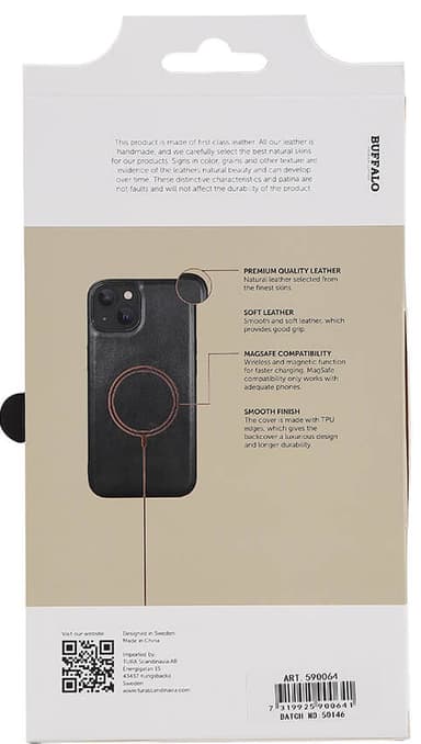 Detta Buffalo Magseries-fodral är designat i Sverige, tillverkat av kvalitetsläder handgjort i Indien och kommer skydda din nya iPhone med stil. Gummerade kanter på fodralet hjälper till att förbättra greppet och förhindrar halkning.Läs mer om produkten