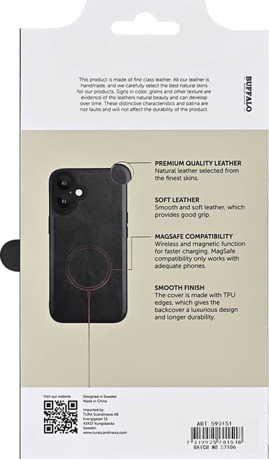 Det eleganta Buffalo MagSeries iPhone 16-fodralet erbjuder både fall- och stötskydd samt en förstklassig läderlook. Fodralet har mjuka gummerade kanter för bra grepp och erbjuder kompatibilitet med MagSafe för sömlös trådlös laddning.Läs mer om produkten