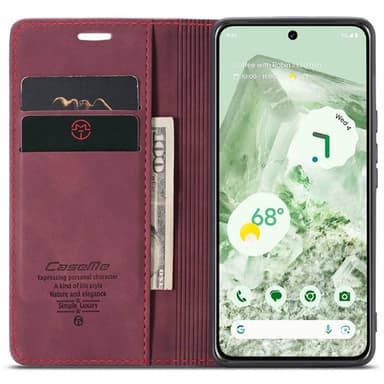 CaseMe Flip plånbok kompatibel med Google Pixel 8a är ett praktiskt fodral och en symbol för stil och elegans. Med flera kortfack och ett separat fack för sedlar kan du enkelt förvara dina viktigaste kort och kontanter/kvitton. Dolt magnetlås säkerställer att allt hålls på plats och skyddar din telefon mot repor, fall och stötar.