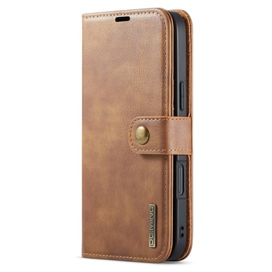 Ett plånboksfodral i läder med magnetiskt avtagbart innerskal.