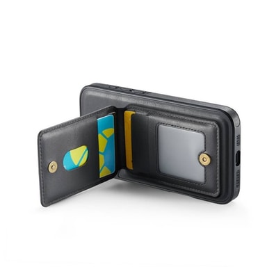 Mobilfodralet erbjuder en komplett lösning för att skydda din telefon samtidigt som dess användarvänlighet förbättras. Utrustad med avtagbar magnetisk plånbok med plats för kreditkort. Mobilskalet har integrerade magneter som håller plånboken på plats. Mobilskalet har MagSafe teknologi, vilket säkerställer en säker och effektiv anslutning för trådlös laddning. Fodralet inkluderar en inbyggd ringhållare som ger ett säkert grepp, vilket gör det enkelt att ta stabila och välkomponerade selfies. Plånbokslocket kan vikas till ett horisontellt läge och fungerar som en stabil bas för handsfreevisning av videor, videosamtal eller läsning. Praktiskt och enkelt att besvara samtal, eller om du vill lämna plånboksdelen hemma och endast använda telefonen.
