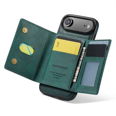 Mobilfodralet erbjuder en komplett lösning för att skydda din telefon samtidigt som dess användarvänlighet förbättras. Utrustad med avtagbar magnetisk plånbok med plats för kreditkort. Mobilskalet har integrerade magneter som håller plånboken på plats. Mobilskalet har MagSafe teknologi, vilket säkerställer en säker och effektiv anslutning för trådlös laddning. Plånbokslocket kan vikas till ett horisontellt läge och fungerar som en stabil bas för handsfreevisning av videor, videosamtal eller läsning. Praktiskt och enkelt att besvara samtal, eller om du vill lämna plånboksdelen hemma och endast använda telefonen.