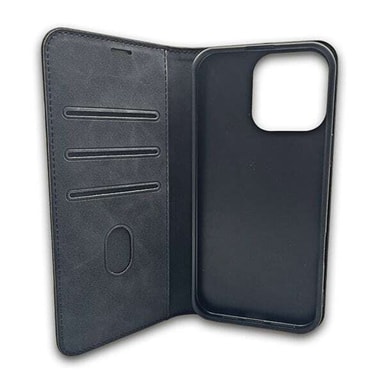 Elegant konstläderfodral med kortfack och magnetlås till iPhone 16 Plus - SvartLäs mer om produkten