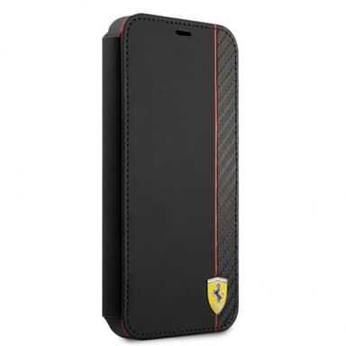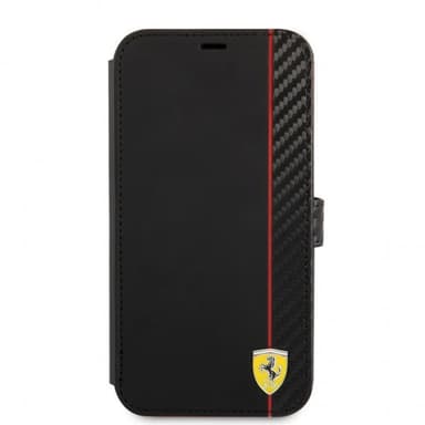 Ferrari iPhone 13 Mini Fodral Carbon Effect Metal Logo Vertical Stripe Svart