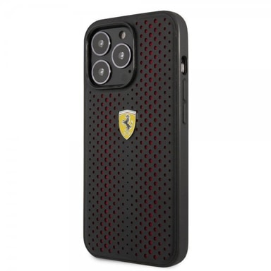 Ferrari iPhone 14 Pro Max Skal Logo Perforerad Svart Röd
