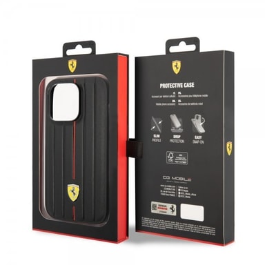 Ferrari iPhone 14 Pro Skal Embossed Stripes Röd
