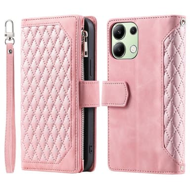 • För Xiaomi Redmi 15C Zipper Wallet Case Rhombus Stitching Line Telefonfodral