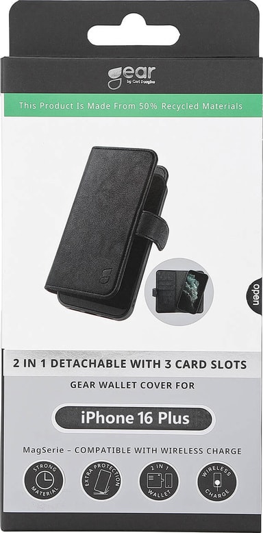 Gear iPhone 16 Plus 2in1 plånboksfodral (svart)
