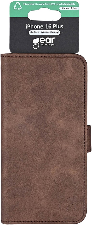 Gear iPhone 16 Plus plånboksfodral (brunt)