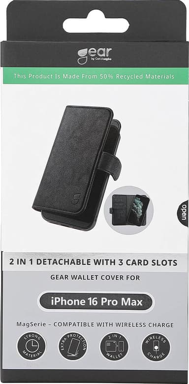 Gear iPhone 16 Pro 2in1 plånboksfodral (svart)