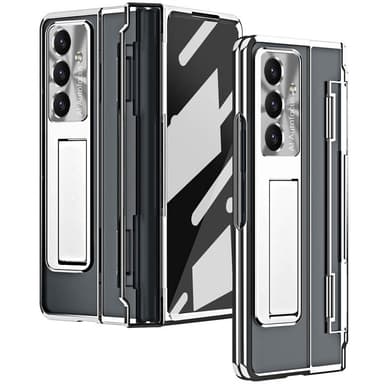 Funktionellt mobilskal med en genomskinlig design, utrustat med utfällbart ställ perfekt för videosamtal eller streaming.