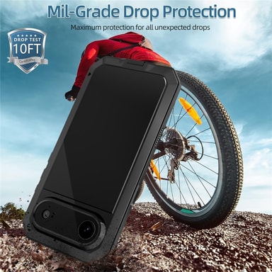 För iPhone Air skal i silikon + metall med skärmskydd i härdat glas - Svart【Överlägset skydd】Erbjuder 360 graders skydd med förstärkt dämpning för att skydda din telefon från fall, damm och vattenstänk (IP54-klassning), vilket garanterar säkerhet i vLäs mer om produkten