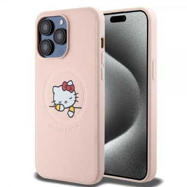Hello Kitty iPhone 15 Pro Max Skal Debossed Logo MagSafe Rosa