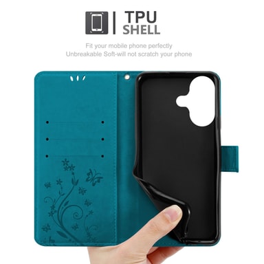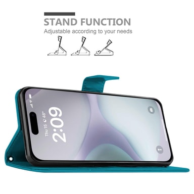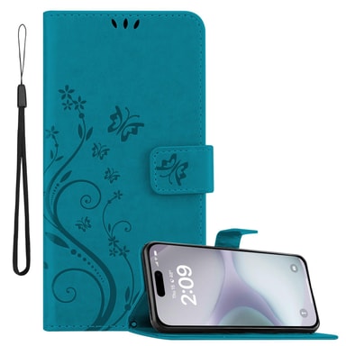 iPhone 16 PLUS Plånboksfodral Skal Blommor (Blå)