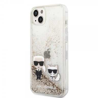 Karl Lagerfeld iPhone 14 Plus Skal Liquid Glitter Karl & Choupette Guld