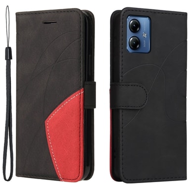 För Motorola Moto G14 KT Series-1 Dubbelfärgad fodral med rem - SvartTillverkad av PU-läder och TPU-material, skydd i två lagerFashionabla tvåfärgade skarvningsdesign med oregelbundna linjerPlånboksstil: 2 kortplatser + 1 fotofack + 1 kontantfickaStöLäs mer om produkten