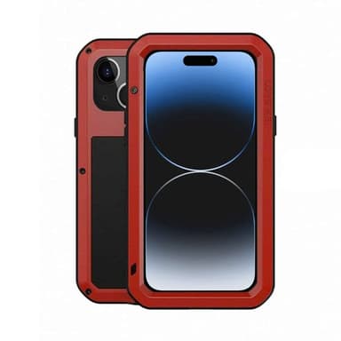 Röd LOVE MEI Powerful metall/aluminium/TPU skal till Apple iPhone 15 Plus.
