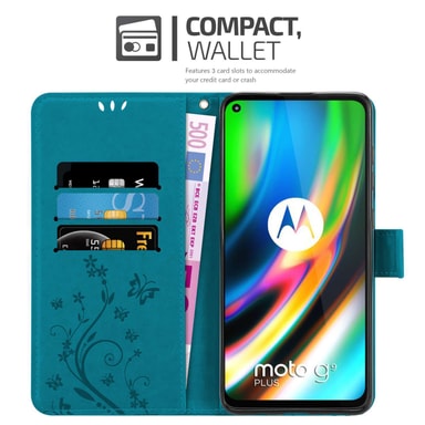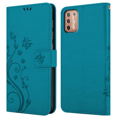 Motorola MOTO G9 PLUS Plånboksfodral Skal Blommor (Blå)