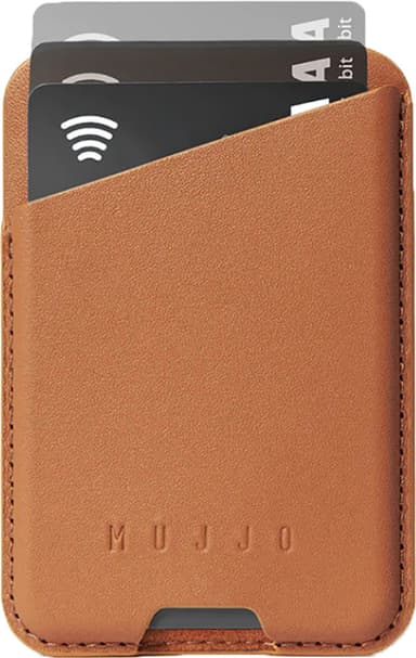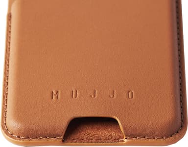 Mujjo MagSafe korthållare för 6,1" telefon och större iPhone eller för Mujjo-fodral med MagSafe för iPhone 14 och uppåt i läder har antihalkkanter i silikon, och är en pålitlig och snygg miniplånbok.Läs mer om produkten