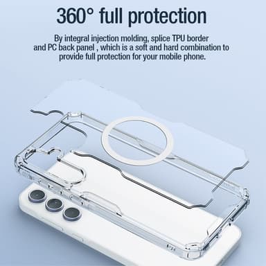 Ett extra tåligt hybrid-skal från NILLKIN Pro Series. Transparent design med magnetisk ring för laddning.