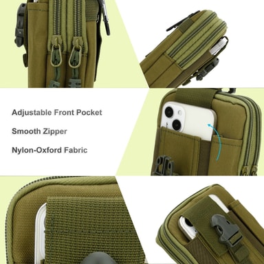 Molle-remmen på baksidan ger flexibla fästmöjligheter på ett bälte, en ryggsäck eller en väst. Den medföljande axelremmen erbjuder ytterligare ett bäralternativ. Denna mångsidighet gör väskan till en oumbärlig följeslagare.