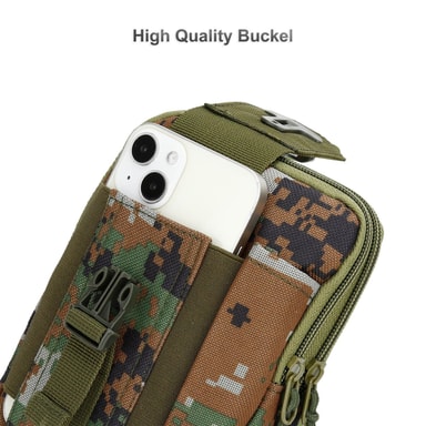 Väskan är tillverkad av högkvalitativ, stänksäker och nötningsbeständig polyester och är robust och skyddar dina enheter från repor och skador. Den kamouflagemönstrade designen ger väskan en snygg, militär design som matchar din friluftsutrustning.