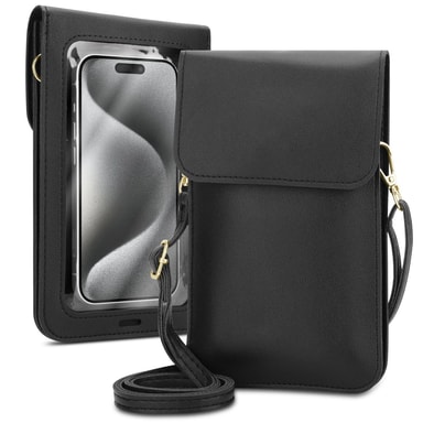 Smartphone-väskan erbjuder tillräckligt med utrymme för viktiga och små föremål. Den är också multifunktionell som axelväska eller crossbody-väska tack vare den långa remmen.
