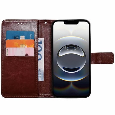 En elegant kombination av funktionalitet och stil. Utrustat med tre kortfack kan du enkelt bära med dig dina viktigaste bankkort, ID-kort eller kontanter så att du alltid har dem inom räckhåll. Mobiltelefonen sitter fast i en modellanpassad ram av silikon. Fodralet skyddar hela telefonen. Åtkomst för telefonens funktioner. Mobilfodralet har även integrerad ställfunktion, perfekt för filmvisning. Dolt magnetlås håller plånboken stängd.