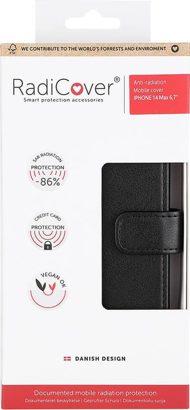 Skydda din hälsa samtidigt som du skyddar din telefon tack vare Radicover flipfodral. Det är tillverkat av PU-läder av hög kvalitet, skyddar mot 86 % av mobilstrålningen och har och fungerar som ett stativ för bekväm filmtittande.Läs mer om produkten