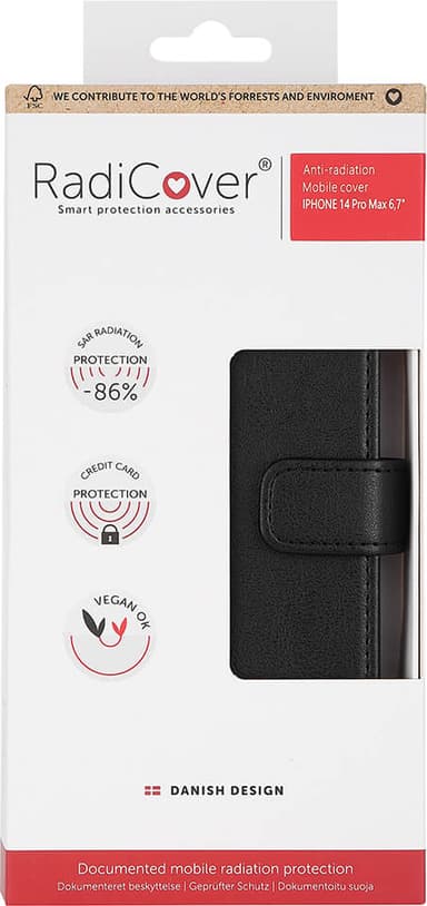 Skydda din hälsa samtidigt som du skyddar din telefon tack vare Radicover flipfodral. Det är tillverkat av PU-läder av hög kvalitet, skyddar mot 86 % av mobilstrålningen och har och fungerar som ett stativ för bekväm filmtittande.Läs mer om produkten