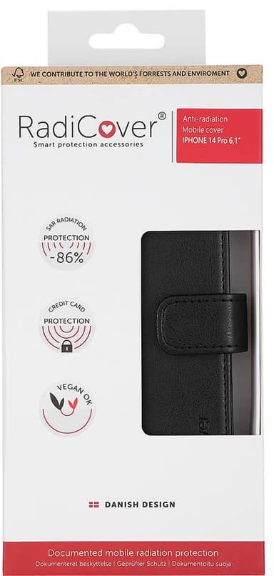 Skydda din hälsa samtidigt som du skyddar din telefon tack vare Radicover flipfodral. Det är tillverkat av PU-läder av hög kvalitet, skyddar mot 86 % av mobilstrålningen och har och fungerar som ett stativ för bekväm filmtittande.Läs mer om produkten