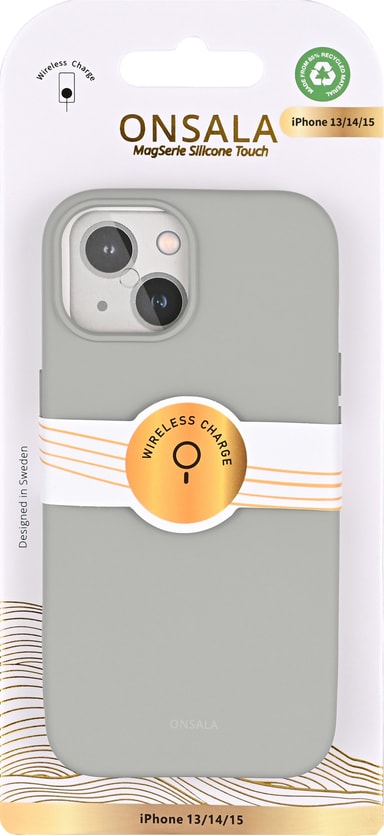 Förbättra utseendet på din telefon samtidigt som du håller den skyddad med Onsala iPhone 13/14/15 silikonfodral. Det MagSafe-kompatibla fodralet av återvunnet silikon ger ett heltäckande skydd, som täcker knapparna utan att kompromissa med utseendet.Läs mer om produkten