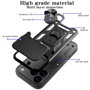 Upplev ultimat skydd och funktionalitet med Armor Metallring Kameraslider. Detta skal är designat för att ge din telefon ett elegant utseende samtidigt som det skyddar mot vardagliga utmaningar. Den inbyggda roterbara ringen gör det enkelt att använda telefonen med en hand och justera betraktningsvinkeln, medan den magnetiska hållarens kompatibilitet säkerställer stabil placering i bilen.