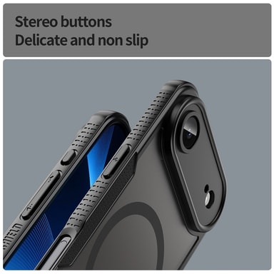 Armor Hybrid Frosted är ett slimmat och skyddande mobilskal som kombinerar stil med funktionalitet. Det är tillverkat av hård PC och mjuk TPU, vilket ger ett lätt men robust skydd utan att göra telefonen klumpig. Den starka magnetiska anpassningen gör skalet kompatibelt med MagSafe och trådlös laddning. De upphöjda kanterna runt kamera och skärm skyddar mot repor, medan luftkuddarna i hörnen ger extra stötskydd. Den halvtransparenta, frostade ytan motverkar fingeravtryck och ger ett elegant utseende. Med precisa utskärningar får du enkel åtkomst till alla funktioner utan att ta bort skalet.
