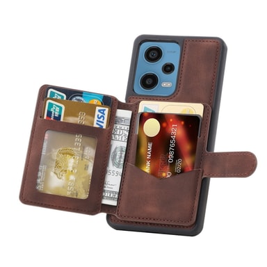 Ett skal i PU Läder med snyggt utseende samt en plånbok monterad på baksidan av skalet med totalt 7-fack.