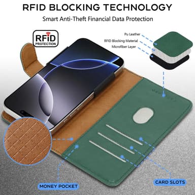 Multifunktionell: Det universella skyddsfodralet som passar Xiaomi Poco X7 har en magnetlås, två kortfack och ett sedelfack. Det är en praktisk plånbok och när det fälls ihop blir det ett stöttåligt 360-graders mobilfodral.