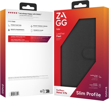 Zagg Honor X7b plånboksfodral är ett pålitligt fodral som håller din telefon skyddad i alla vardagssituationer. Detta slimmade, eleganta plånboksfodral är tillverkat av PU-läder och inkluderar kortplatser och ett praktiskt inbyggt stativ.Läs mer om produkten