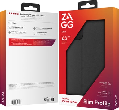 Tack vare Zagg iPhone 15 Plus plånboksfodral kan du hålla din telefon skyddad mot fall och stötar samtidigt som du har tre kortplatser för ID och bankkort. Dessutom erbjuder fodralet en stilren PU-läderlook och ett inbyggt stativ.Läs mer om produkten