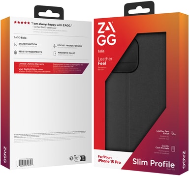 Tack vare Zagg iPhone 15 Pro plånboksfodral kan du hålla din telefon skyddad mot fall och stötar samtidigt som du har tre kortplatser för ID och bankkort. Dessutom erbjuder fodralet en stilren PU-läderlook och ett inbyggt stativ.Läs mer om produkten