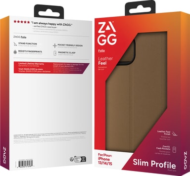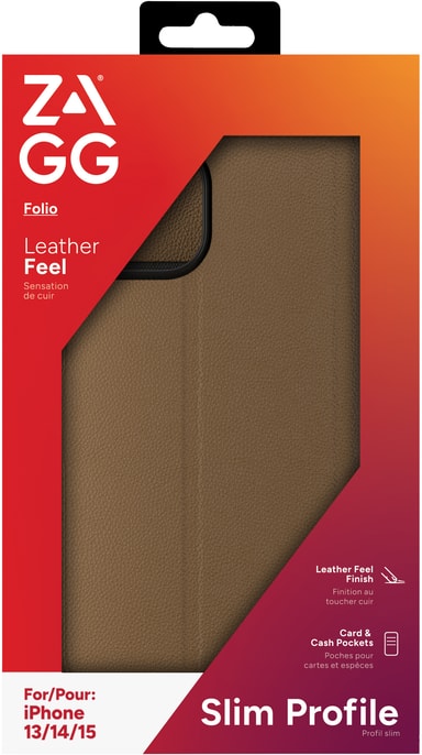Zagg iPhone 16e/15/14/13 plånboksfodral (brunt)