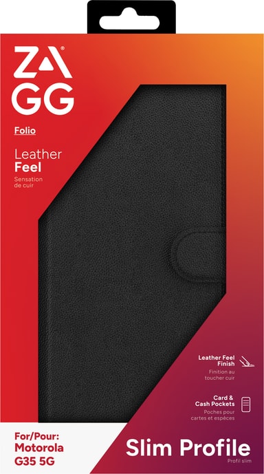 Zagg Motorola G35 5G plånboksfodral är ett pålitligt fodral som håller din telefon skyddad i alla situationer. Detta slimmade, eleganta plånboksfodral är tillverkat av PU-läder och inkluderar kortplatser och ett praktiskt inbyggt ställ.Läs mer om produkten