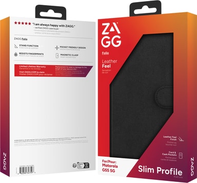 Zagg Motorola G55 5G plånboksfodral är ett pålitligt fodral som håller din telefon skyddad i alla situationer. Detta slimmade, eleganta plånboksfodral är tillverkat av PU-läder och inkluderar kortplatser och ett praktiskt inbyggt ställ.Läs mer om produkten