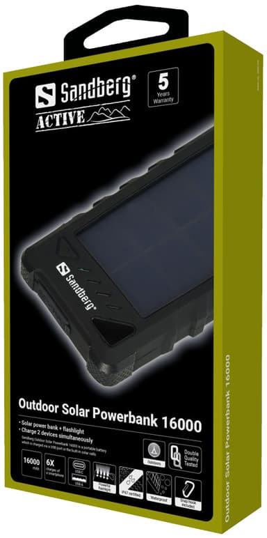 16.000 mAh Outdoor Solar PowerBank, Black