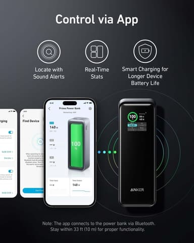 Anker Prime 250W reservströmförsörjning är en kraftfull och kompakt bärbar laddare som ger dig otroligt snabb laddning av alla dina enheter. Oavsett om det är en bärbar dator, telefon eller annan elektronik är detta nätaggregat det perfekta valet. Anker Prime Power Bank stöder upp till 250 W laddningseffekt med PD 3.1-teknik. Du kan till exempel ladda din MacBook Pro 16"" (M2 Pro) till 50 % på bara 28 minuter. Anker Prime 250W inkluderar Bluetooth, så att du kan ansluta den till din telefon och använda de mångsidiga funktionerna som finns i appen för att styra enheten . Du kan till exempel lokalisera reservströmkällan med ett ljudlarm, övervaka realtidsstatistik eller optimera enhetens batterilivslängd med smart laddning. Utöver applikationen kan du övervaka data för reservströmkällan med hjälp av skärmen som finns på enheten. Skärmen visar batteriets återstående kapacitet, aktuell in-/utgångseffekt för varje USB-port, batteriets varaktighet med aktuell belastning, batteriets laddningstid, laddningscykler och batteritemperaturen. Från inställningarna för mobilapplikationen kan du ändra temat, i så fall kan du också se spänningen och strömmen för varje port.